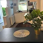 Deluxe Apartement Mit Terrasse lägenhet ligger i Duisburgs Huckingen distrikt och har en terrass. Alla redskap som behövs för matlagning, inklusive mikrovågsugn, vattenkokare och kylskåp, finns i en kokvrå.